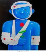 Often monumental in size, Sofia Cacciapaglia’s paintings depict dream-like gardens and larger-than-life female entities suspended in an ethereal space, linked to one another through contact and gaze, placement and pattern. Her paintings harken back to a long Italian tradition of mural painting, from ancient Rome to the Renaissance and into today. The work is also imbued with environmental concerns over waste and mass production and speaks to the radical Italian arte povera movement of the 1960s that challenged traditional modes of production and consumption. By painting on salvaged cardboard boxes rather than canvases, Cacciapaglia allows discarded objects to live di nuovo, renewed, afresh, transformed. Cacciapaglia studied Fine Art at the Accademia di Belle Arti di Brera in Milan; after graduating in 2006, she moved to New York. In 2011 she became the youngest artist invited to the Italian Pavilion for the 54° International Art Exhibition La Biennale di Venezia. This exhibition is presented in collaboration with Sapar Contemporary, New York.
