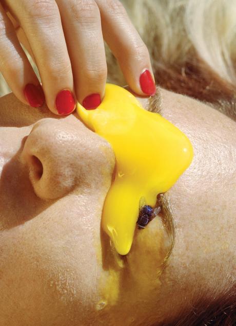 Artist statement: In this project I focus on my relationship with my partner, our sexualites and how to navigate these issues outside of the LDS faith of my childhood. The work engages with our struggles with gender, sexual expression, mental illness and notions of the female gaze. These explorations arrived at seductive and grotesque imagery of food and body. The lush, large-scale color photographs, tactile soft-sculpture, and variably textured frames apply the visual tools of advertising to seduce the viewer.